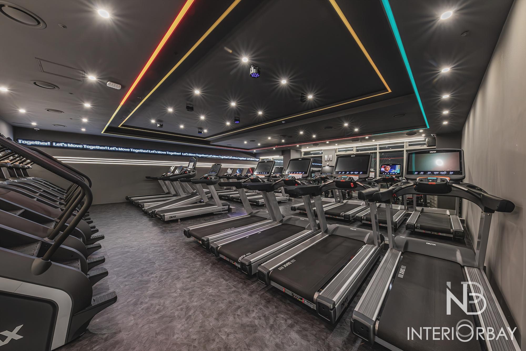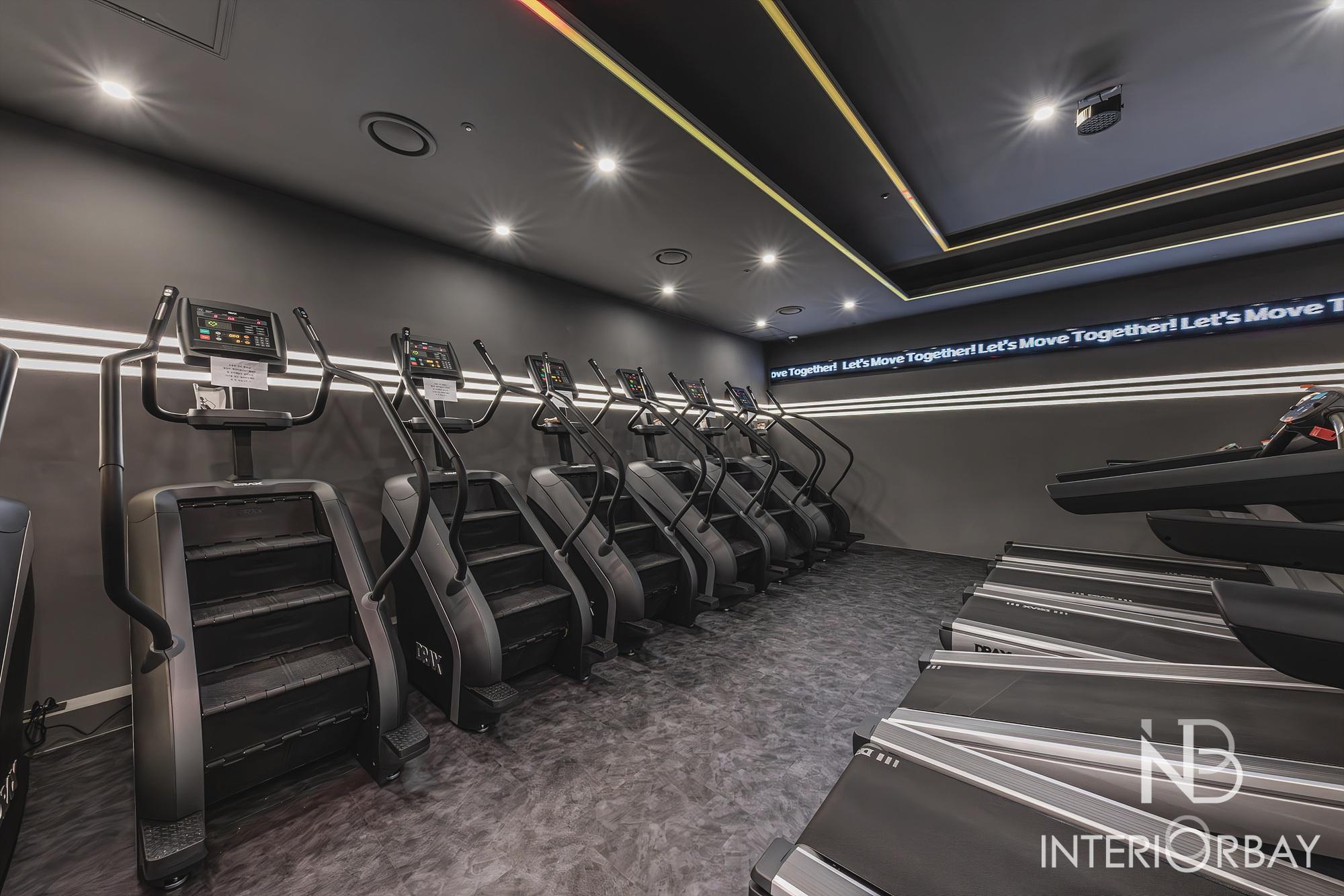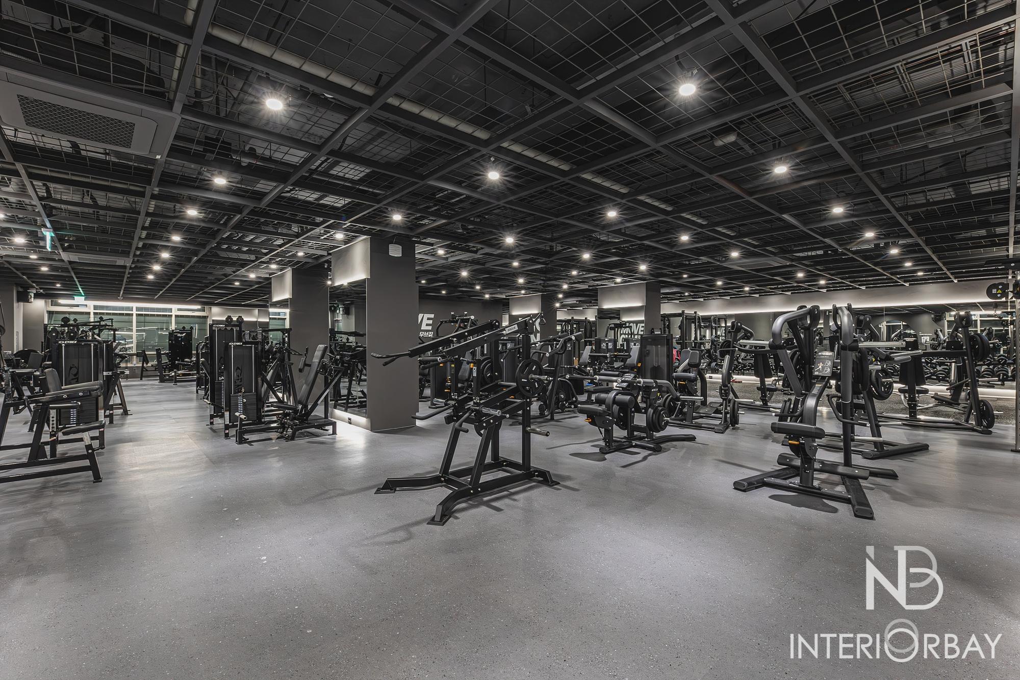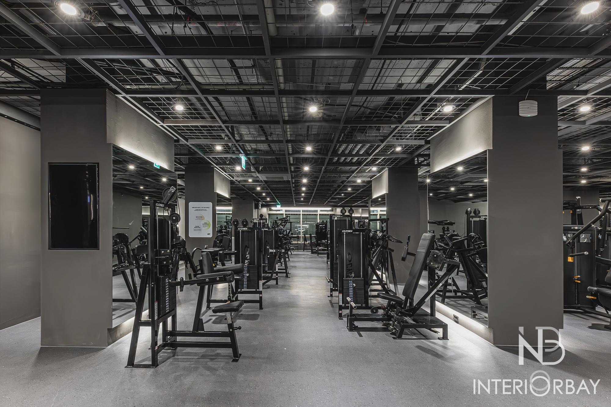 [헬스장] 깔끔한 선으로 매력적이게 돋보인 헬스장 인테리어