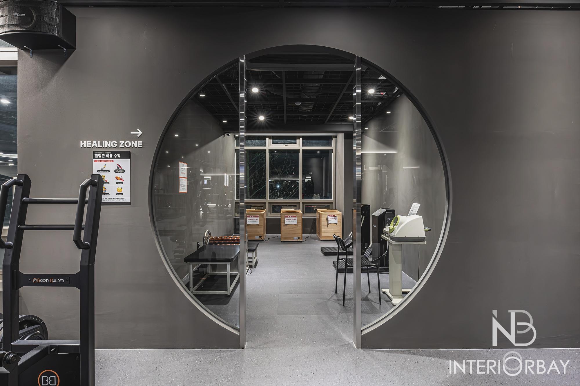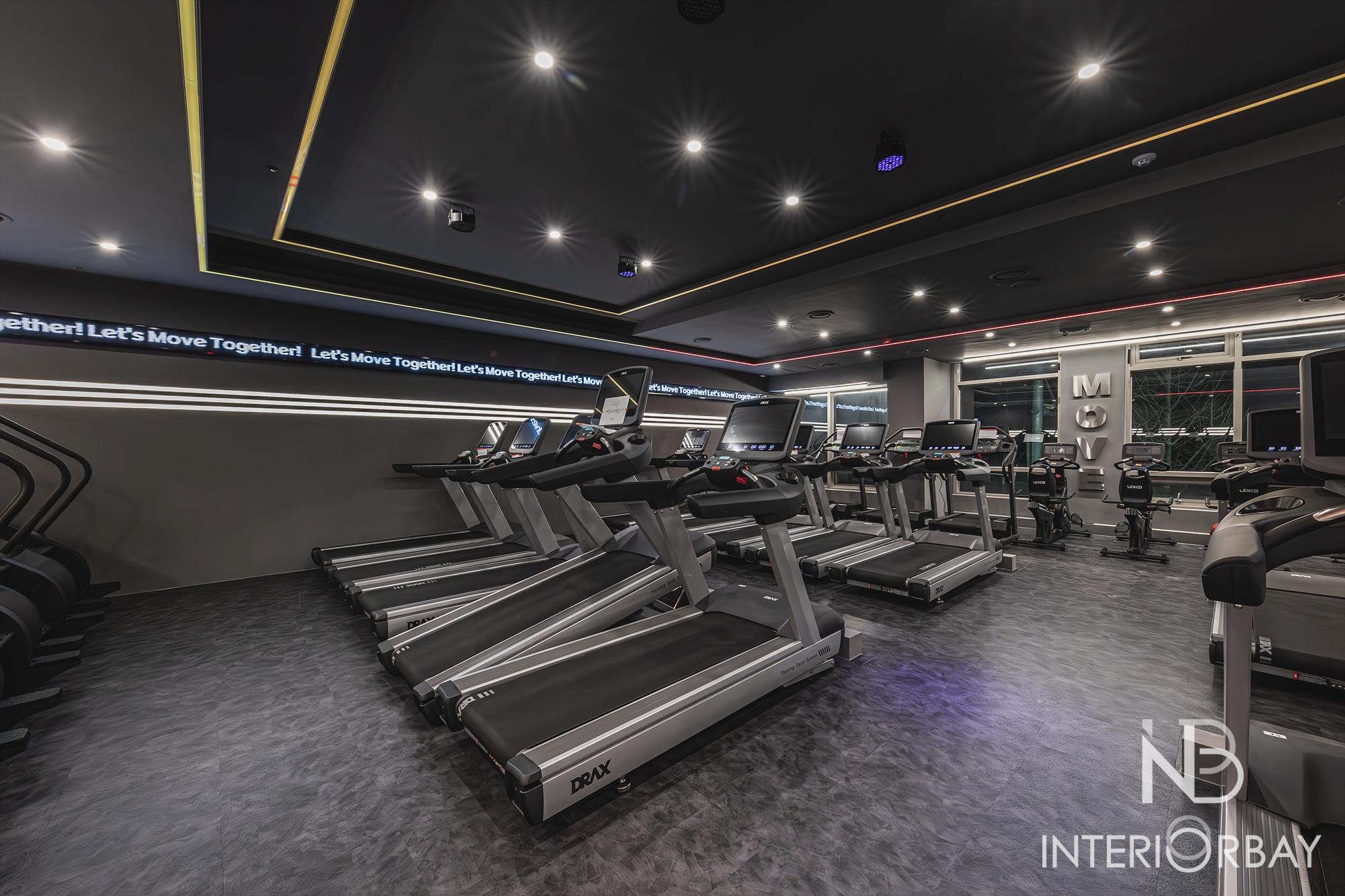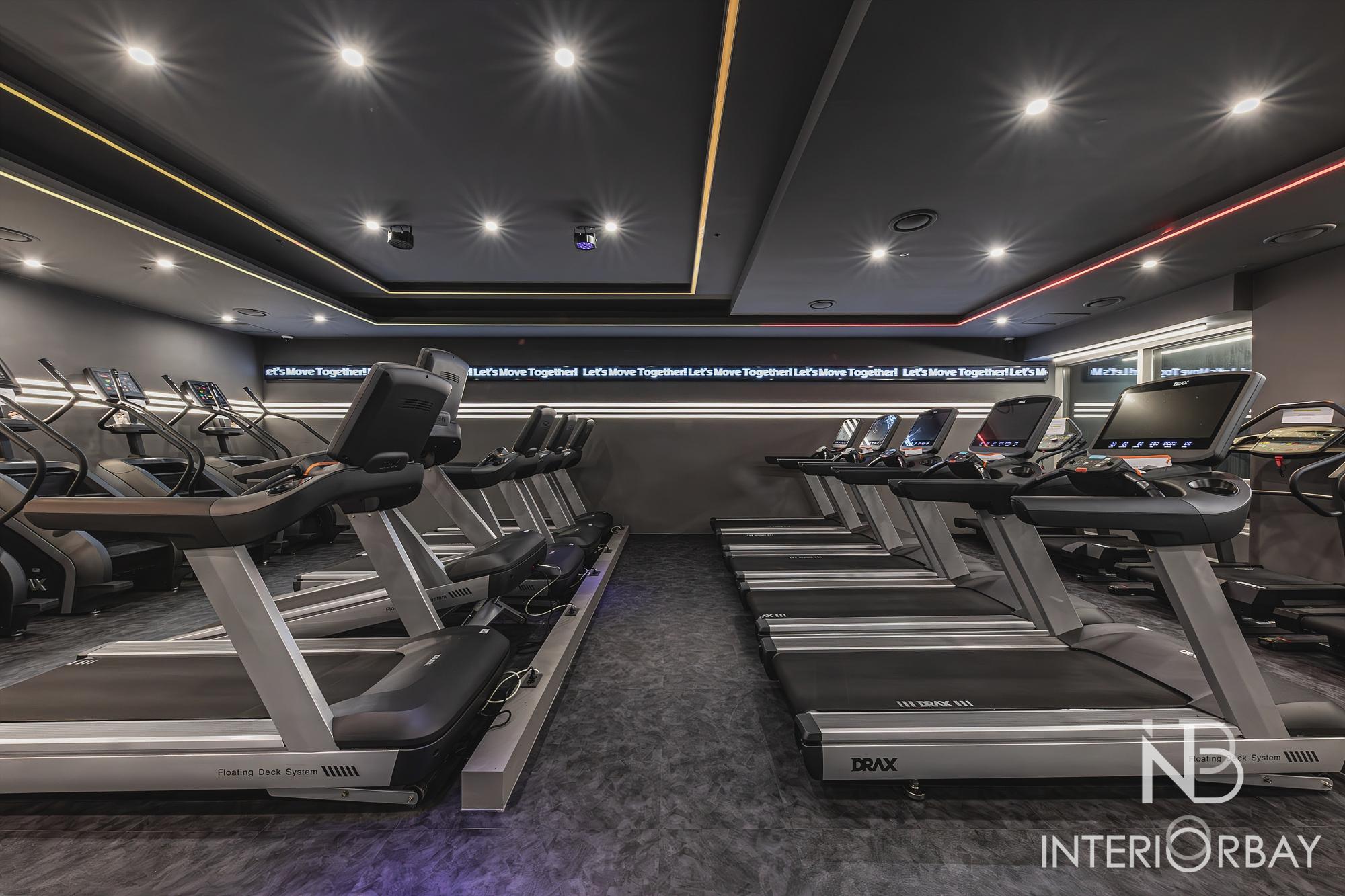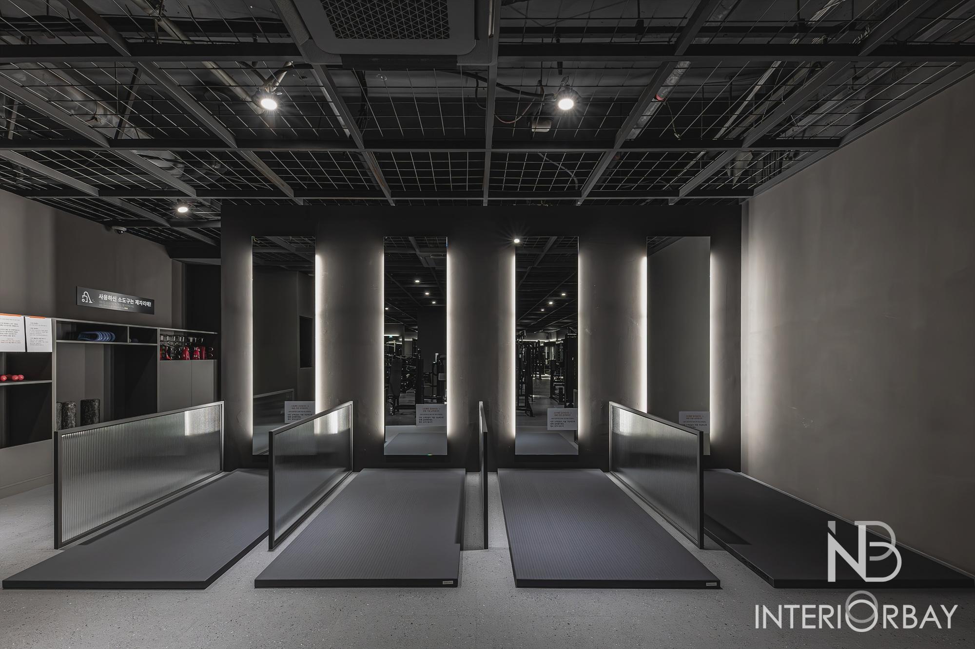 [헬스장] 깔끔한 선으로 매력적이게 돋보인 헬스장 인테리어